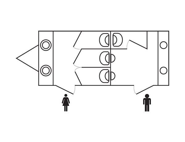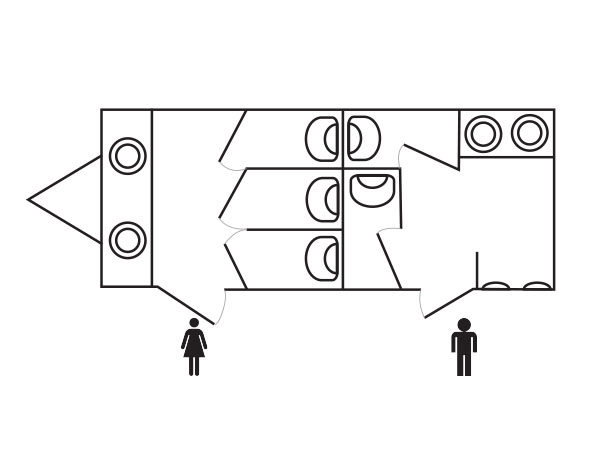 This is one of our 3+1 units which has three toilets for the ladies, one toilet for the gents along with two urinals.