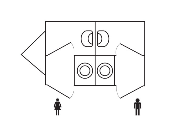This is our 1+1 unit which has one toilet for ladies and 1 toilet for gents. It has its own sink and mirror behind in each section.